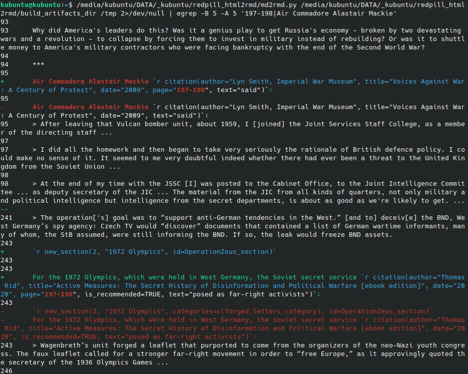 Except I had build 'artifacts' (Markdown, HTML and metadata files), only a few days old, from which I could theoretically reverse-engineer my book's source code (RMarkdown).