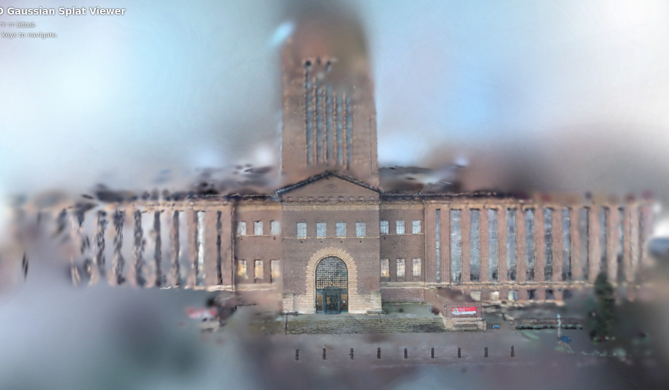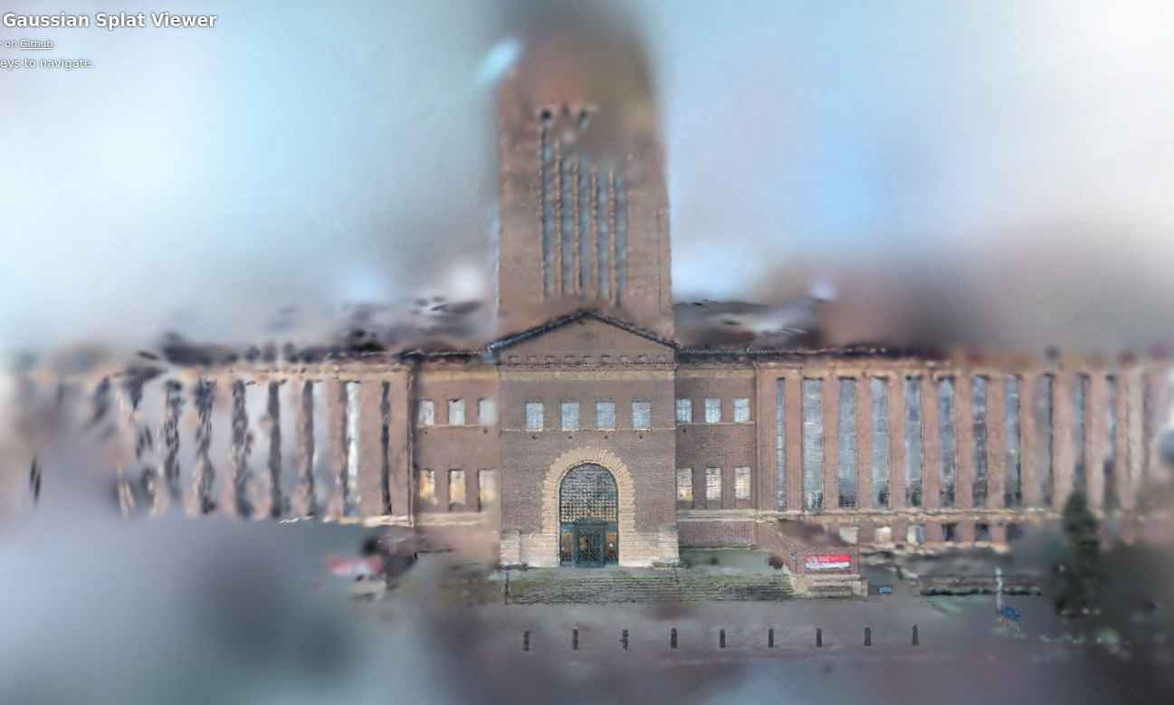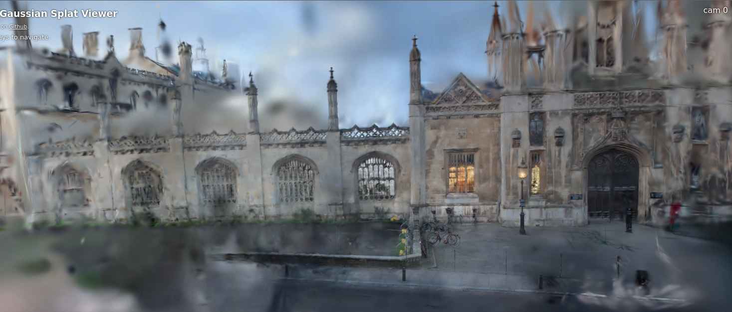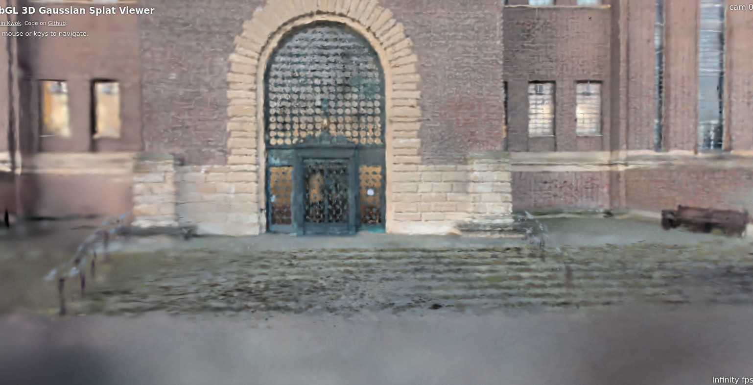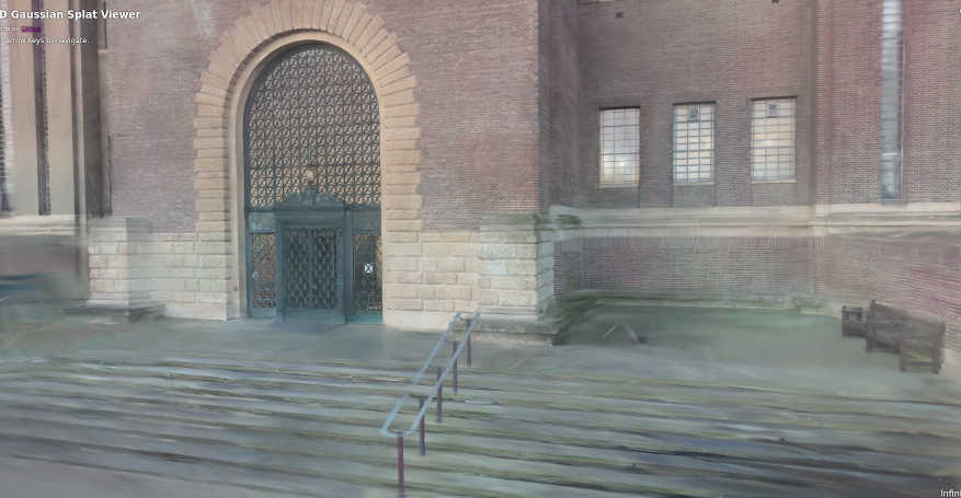 The output was surprisingly great, even with merely 80,000 gaussians. It even captured the bikes parked in front, and had some slight detail inside the porters' office window.