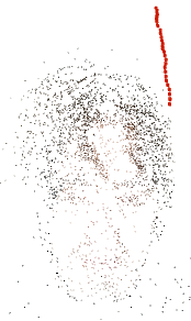 Then I learned about 'interval shooting' on cameras, and set up my DSLR to shoot at 2 second intervals, putting myself in a rotating chair for 33 photos. I then put a mask filter on each photo input to `colmap`, to force `colmap` to believe the camera was moving (instead of me moving). `colmap` took merely 0.3 seconds to complete - presumably because the image files were so small and the masks vastly reduced the usable pixels and features! Even though `OpenSplat` does not yet have a mask feature, it worked surprisingly well, producing a single coherent face. It has the side-effect of giving me a halo, from `OpenSplat` trying to fit the static background elements in (when I am falsely telling it that the camera and thus background is not static).