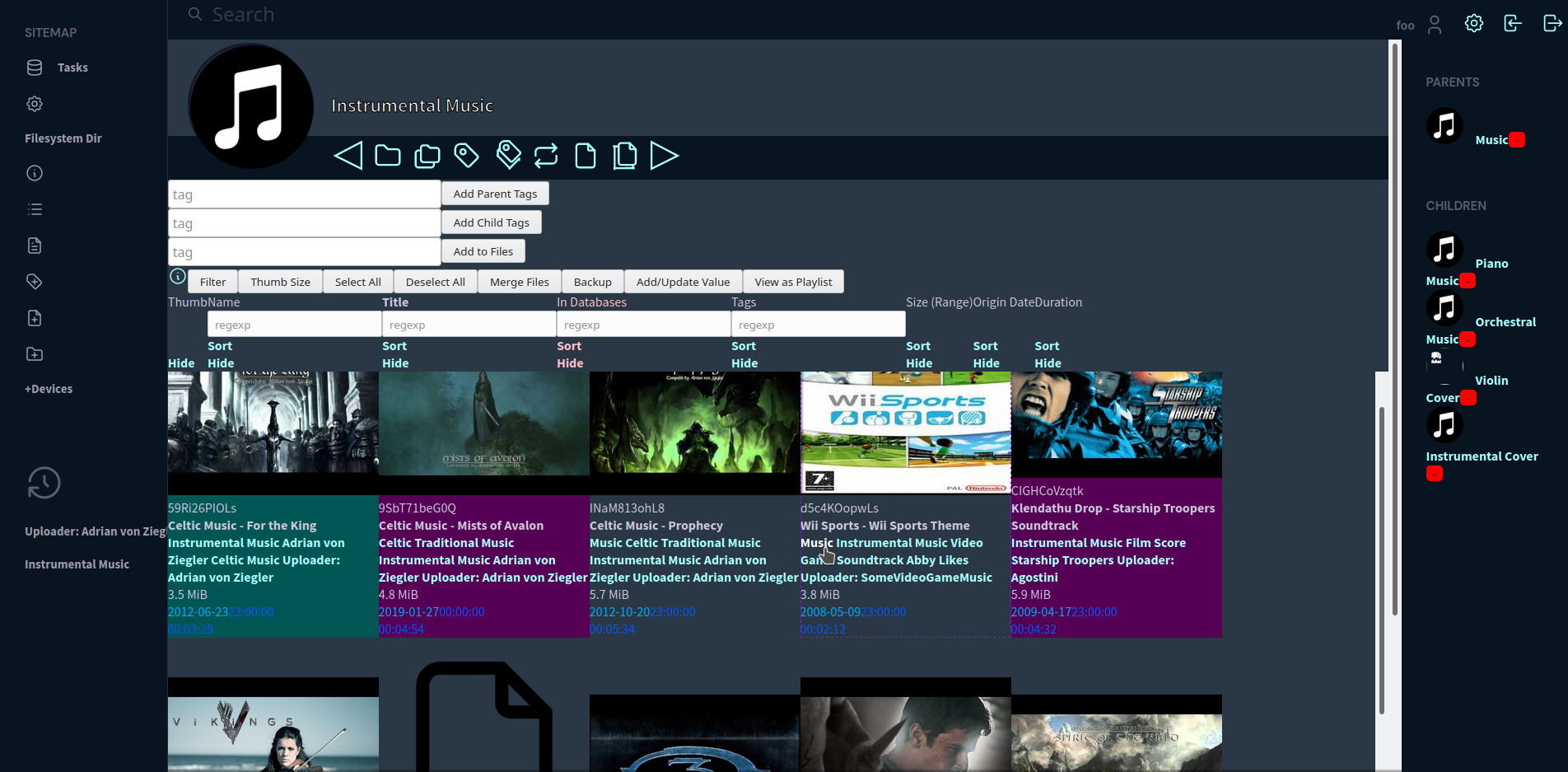 A single page application, with associated command-line utilities, for the rapid categorising and accessing of files, based on assignable attributes such as (heirarchical) tags, named variables, file sizes, hashes, and audio duration.