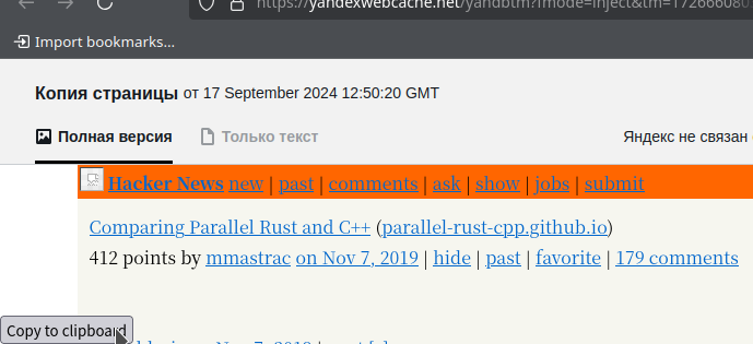 - Adds a 'copy to clipboard' button to all websites, so you can cache the HTML contents (only HTML) with just a couple of clicks